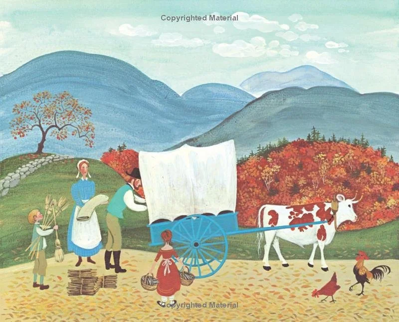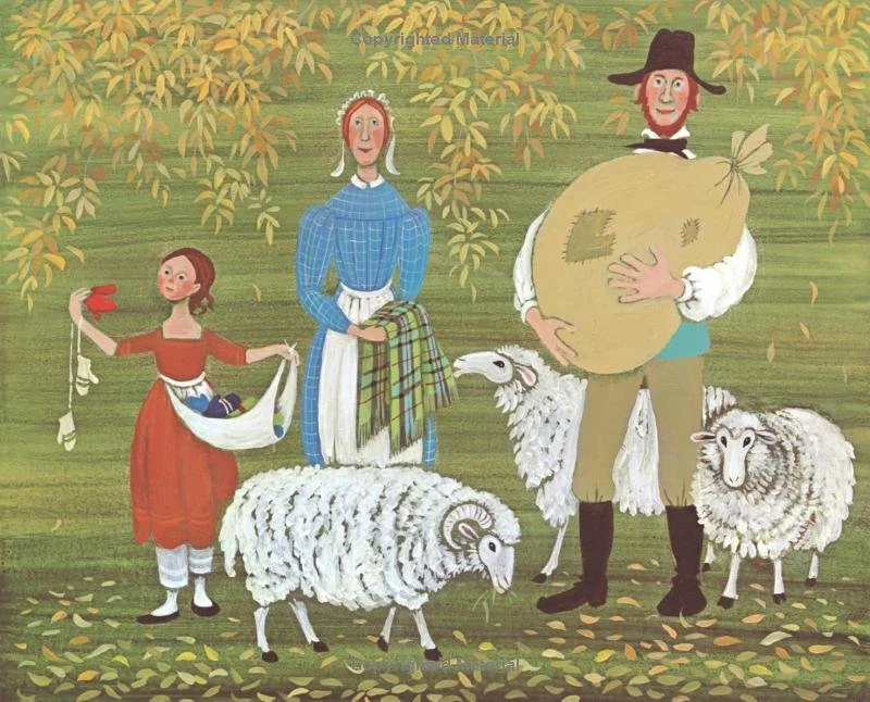 Mini History Lesson: Explain that this story takes place around the early 1800s in New England, before factories and railroads became common. Families made everything they needed. People grew, wove, carved, and traded almost everything they owned.