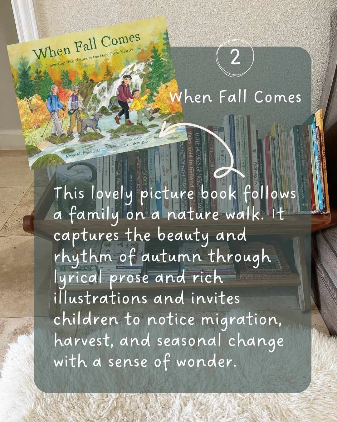 This lovely picture book follows a family on a nature walk as they explore a broad range of ecosystems and discover wildlife getting ready for the winter months ahead. It captures the beauty and rhythm of autumn through lyrical prose and rich illustrations and invites children to notice migration, harvest, and seasonal change with a sense of wonder.