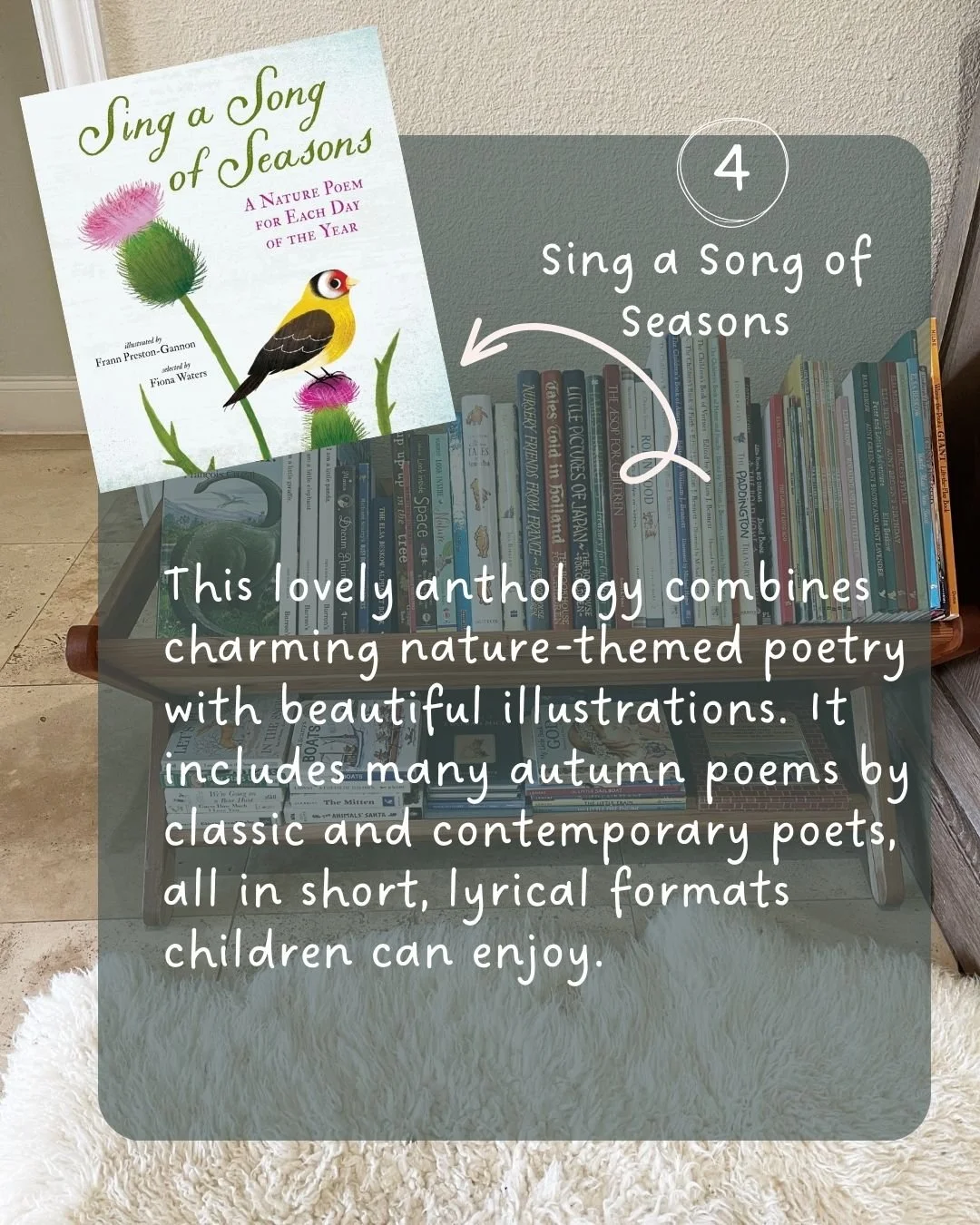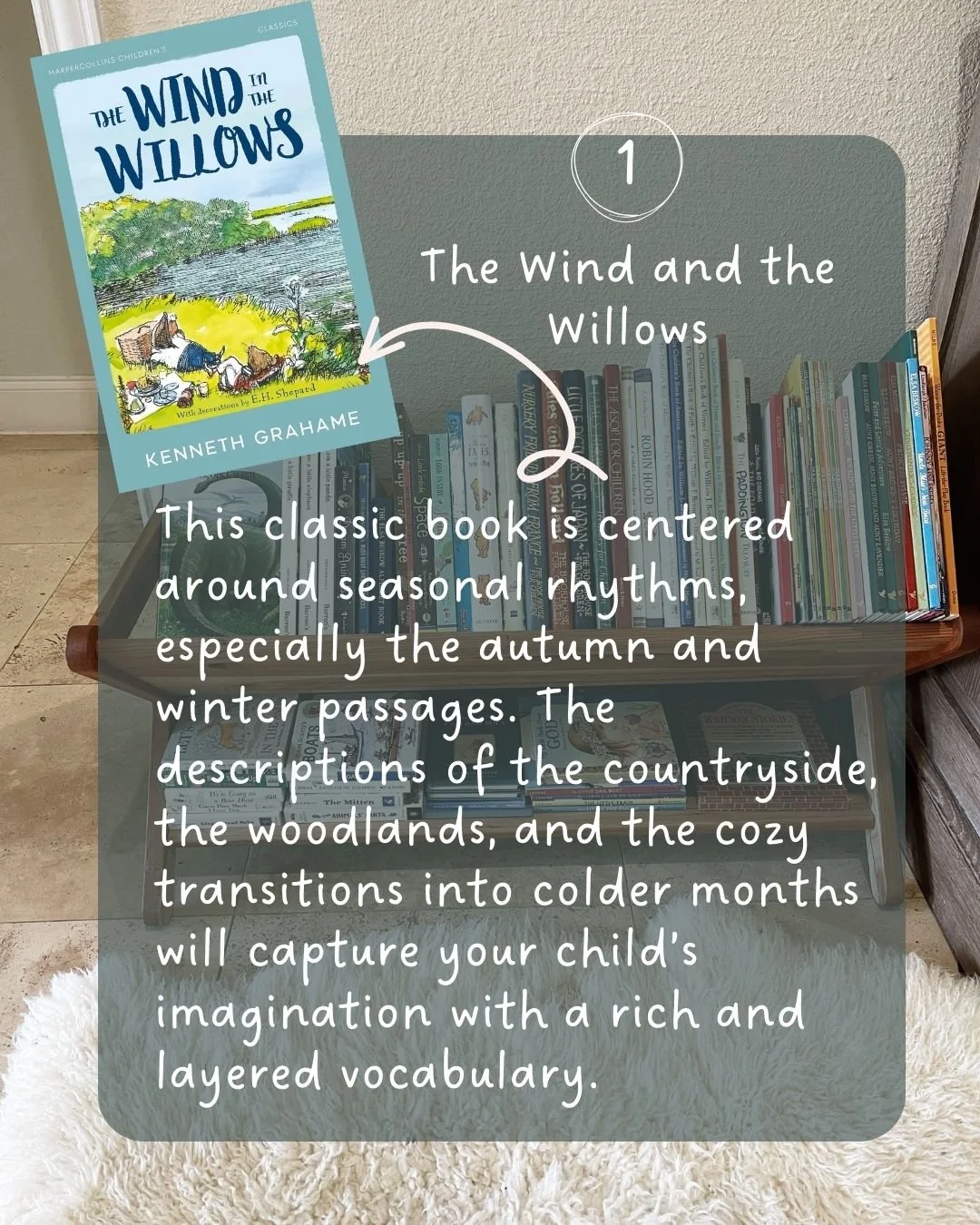 This classic book is centered around seasonal rhythms, especially the autumn and winter passages. The descriptions of the countryside, the woodlands, and the cozy transitions into colder months will capture your child’s imagination with a rich and layered vocabulary.
